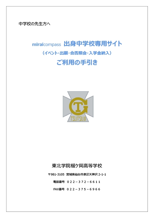 必要書類ダウンロード Web出願ページで推薦書・志願理由書をダウンロードし、記入のうえ他の出願書類と合わせて提出してください。 出願書類送付状はこちらからダウンロードしてください。 2026年度 入学試験 入試説明動画 動画を見る 入試説明資料 PDF (1.2MB) 出身中学校専用サイトご利用の手引き PDF (1.4MB)